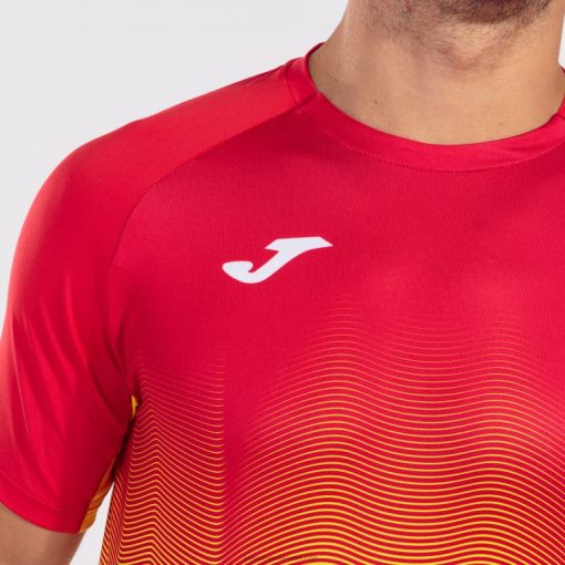 Camiseta de manga corta, cuello redondo y estampado frontal por sublimación. costuras planas. logotipo j sublimado.