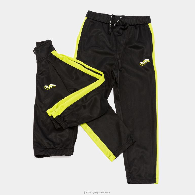 Los pantalones tienen cinturilla elástica con cordones planos personalizados y bolsillos laterales.