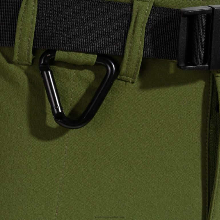El cierre superior del pantalón tiene cierre de botón a presión y cremallera bloqueable. incluye un cinturón con cierre a presión para mantener la prenda ceñida al cuerpo y además dispone de un mosquetón en la parte delantera para facilitar la seguridad del deportista o el transporte de utensilios.